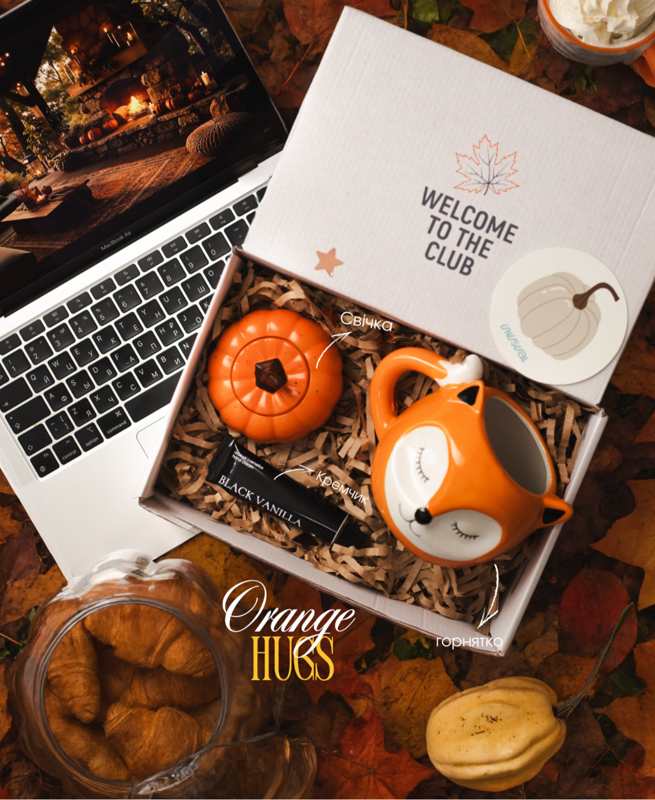 Теплі обійми осені в одному боксі. Горнятко-лисиця, помаранчева свічка та крем Black Vanilla створюють по-справжньому домашню атмосферу. Це набір для ранкової кави біля вікна, коли за склом дощ, а всередині спокій і солодкий аромат ванілі